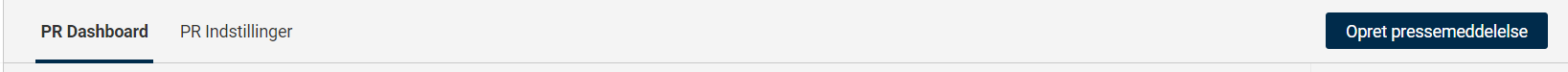Du starter på PR Dashboard. I topmenuen finder du den blå ‘Opret Pressemeddelelse’ knap.