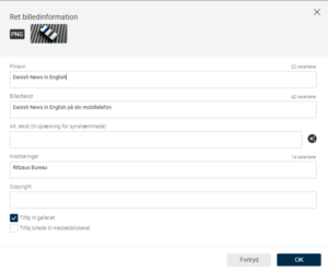 Her kan du udfylde billedtekst og andre felter