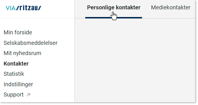 - Klik på [Kontakter] i sidemenuen, og vælg fanebladet [Personlige kontakter].