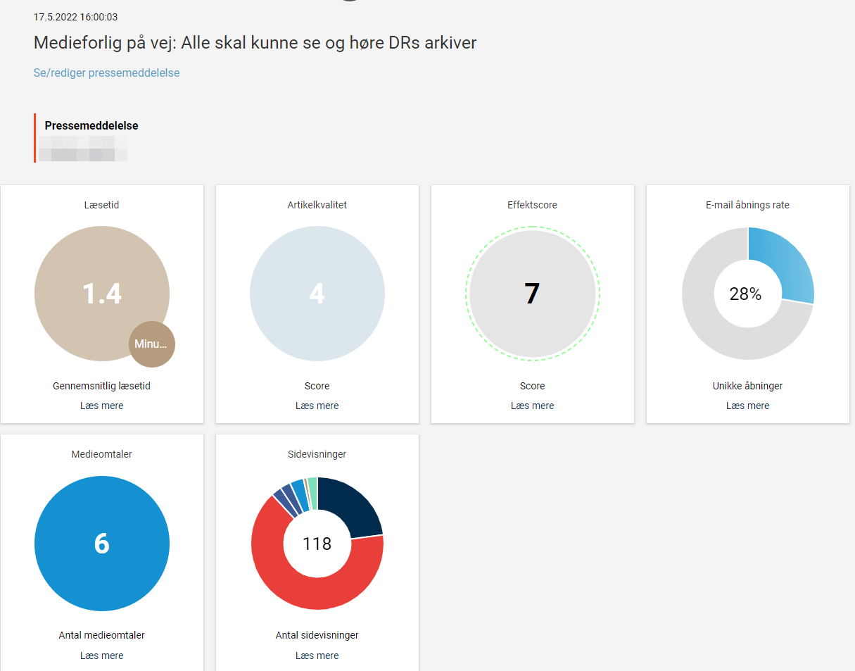 Når du ser statistikken på den enkelte pressemeddelelse vil du se følgende moduler.